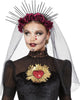 Bring an elegant flair to your Day of the Dead costume this Halloween and add this Sunburst Day of the Dead Headband with Roses. This beautiful headband features a row of dark pink fabric roses along the front with black spikes coming out behind the roses and attached down the back is a black tulle veil. Pair this headband with our range of Day of the Dead accessories.