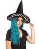 Contact the dead with our Spirit Board Witch Hat. Featuring a black witches hat styled with a white spirit board printed under the hat with letters of the alphabet and the words, "YES" and "NO" for the demonic presense to communicate with you. Inspired by the classic Ouija board game.