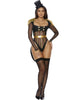 Dress cheeky while cleaning dressed in this sophisticated French Maid Hat Lace Cuffs Apron and Garter Set. This set includes a white maid headpiece attached to a white headband, a pair of white lace wrist cuffs with black mini bows, a mini white apron with lace hem and a white lace garter with a mini black bow. A great set to create your very own maid costume.