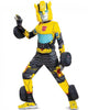 Get ready to Sting the Decepticons with this Transformers Bumblebee Classic Muscle Boys Costume. The costume comes as a full-length, digitally printed jumpsuit designed to look like the animated version of Bumblebee in his true Transformer form and comes with a plastic vacuform half-mask that covers the front of the face and secures in place with an elastic strap around the back of the head. Perfect for your child's next fancy dress party.
