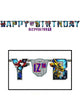 The war rages on but you've chosen the right side, now celebrate in style with this Transformers Jumbo Add an Age Banner. Using a Blue light exploding as the backing the banner has a few images of the most famous Transformers, Optimus Prime and Bumblebee. The age on the autobot emblem can be changed and customized with the provided cutouts. Combining this banner with our range of transformers party supplies will let you show your allegiance to the prime's and their command of the all spark, now autobots unite!!!
