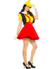 You'll look just the part in this Puppet Womens Costume that's inspired by Pinocchio. The costume is perfect for a fun night out or costume party - you'll turn heads and bring an element of magic to any event because you're clearly not a puppet,you're a real girl. With its bright colours and unique design, this costume will make you stand out from the crowd. The costume features a yellow shirt with white collar and blue tie, as well as a black vest with gold trim and bright red skirt with suspender straps. Also included is a yellow hat to finish off the look. Perfect for fairytale or cartoon themed parties.