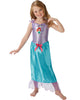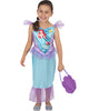 Step into a fairytale with this gorgeous Disney Princess Ariel Fairytale Girls Costume. This beautiful dress is perfect for any little mermaid fan. The purple satin bodice features a printed character pendant in the center and a sparkling sequin design that will catch everyone's eye. The dress also includes gathered tulle shoulder straps for added princess-y charm. The blue satin pencil skirt with an attached tulle hem adds a touch of 'elegant mermaid' to this enchanting costume. Whether for Book Week or a costume party, this mermaid dress is sure to make any little girl feel like a true princess.