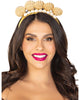 - The Headpiece is in the shape of a crown and is made of satin, decorated with faux jewels.