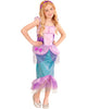 This Enchanting Mermaid Girls Costume is designed to transform your little one into the prettiest creature under the sea. This dazzling pink and purple dress shimmers with sequin trim and features delicate gemstone accents on the bodice. A lovely layered peplum at the waist, adorned with flower embellishments, adds a touch of whimsical magic. The enchanting turquoise shiny scale patterned skirt has a beautifully layered and ruffled hemline, mimicking a tail. To complete her underwater royalty, a purple headband with a star embellishment crowns her with grace. Perfect for Book Week parades, school performances, or magical costume parties, this outfit invites imaginative play and oceanic adventures.