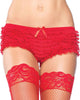 Red Micromesh Lace Ruffle Tanga Shorts