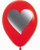 - White balloon with printed red, pink and silver heart pattern.