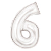 Large Number 6 Silk Lustre White Foil Balloon 56cm w x 92cm h