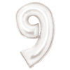 Large Number 9 Silk Lustre White Foil Balloon 57cm w x 91cm h