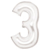 Large Number 3 Silk Lustre White Foil Balloon 53cm w x 87cm h