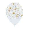 Sempertex 30cm Golden Diamonds Fashion White with Glitter Ink Latex Balloons 005 12PK Pack of 12
