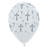 Sempertex 30cm Holy Cross Satin Pearl White & Silver Ink Latex Balloons 25PK Pack of 25