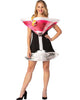 You aren't a true city gal if you don't like a good cosmo so become one in this Cosmopolitan Dress Womens Costume. The dress is black and features a digitally printed Cosmopolitan cocktail in a martini glass on both sides, as well as an attached curl of orange rind out the top. Perfect for a night out with the gals, Hen's themes, or for your next food and drink-themed party for some city chic style.