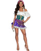 Embark on an adventure into the heart of the sea wearing our Swashbuckler Pirate Womens Costume. The costume includes an off-the-shoulder white puff sleeve blouse, green waistcoat with whimsical white lacing on the front and matching headscarf. There is a layered green and black striped skirt included, plus a black waist sash to complete the look. This costume is perfect for navigating your crew on the high seas at your next pirate party or Book Week event.