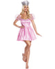 This Good Witch Pink Womens Costume is designed to transform you into a vision of pure, flirty magic. The enchanting pink satin mini dress features a mesmerising glitter stars mesh overlay and playful puff sleeves, ensuring you sparkle with every graceful step. A dazzling starburst brooch highlights the neckline, while the back zipper closure keeps the look sleek. Complete your glamorous transformation with the beautiful silver glitter die-cut crown, and get ready to charm everyone in all of Oz. Ideal for Halloween, Wizard of Oz themed parties, or theatrical performances, this costume promises to captivate and charm. Pair with sparkling shoes and a wand for the ultimate Glinda inspired look.