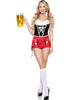 This Alpine Beer Girl Womens Costume features a charming blend of Bavarian tradition and playful design. The costume includes a beige dress with a vibrant red lace-up bodice, adorned with an attached mini apron. Perfect for Oktoberfest celebrations or themed parties, this ensemble captures the essence of a festive beer garden. Pair it with knee-high socks and some plaits for a complete look.