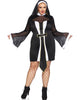 Walk the halls of the madhouse and keep a close eye on your patients in this Haunted Asylum Nun Plus Size Womens Costume. Asylums are terrifying enough but no one will prepare themselves for this eerie costume. Costume includes a long white fitted robe with long sleeves, grey around the neckline and a white upside down cross on the chest, a white and grey habit which drapes around your shoulders and a grey rope belt to tie around your waist. Paint your face ghostly white to complete the look. Have your friends say their prayers before they go to sleep tonight or you may make your presence known in their dreams.