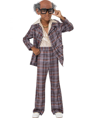 This 100 and Still Stylin Seniors Boys Costume will have you dancing your best moves at your ripe old age. This costume comes with a jacket and pants both printed in a brown and grey retro plaid print. The jacket has wide lapels and buttons up at the front. There is an included cream coloured button up shirt with a wide collar. Complete your groovy gentleman with accessories and props from our old people range.