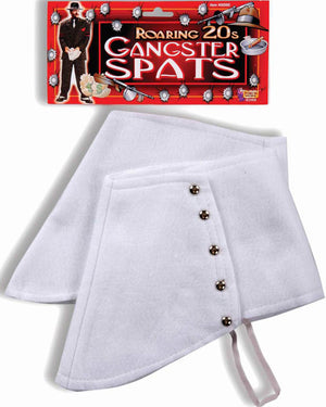 Wear these White Spats over your own black shoes to recreate the dapper effect favoured by gents from the 1890's to the 1940's. Made from white felt fabric with silver toned metallic faux buttons. Perfect accessory for gangsters and other early 20th century period costumes.