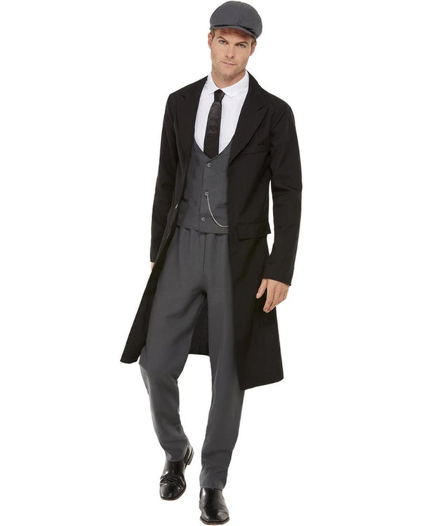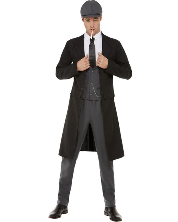 Step into the gritty world of the 1920s underworld with this 20s Peaky Blinders Dapper Shelby Men's Costume! This suave ensemble truly captures the essence of Tommy Shelby's iconic style from the hit TV series. Complete with a grey newsboy cap, white shirt, and a sleek grey mock waistcoat, you'll give an effortless cool from head to toe. Top it off with the long coat-like jacket featuring a button enclosure and matching grey trousers for a look that's straight out of Birmingham's backstreets. Perfect for men ready to embody the swagger of the Peaky Blinders, whether it's for a themed party, costume event, or just a night of mischief.
