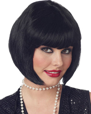 Be the leading lady with this black synthetic 1920s style Sexy Black Flapper Wig. A classic bob look that was the height of fashion in the 1920's, framing the face just under the chin with front bangs. Just add some beads, a sparkling dress and heels and you will be flapping in no time. Wear a wig cap for added comfort and to keep your own hair under wraps.