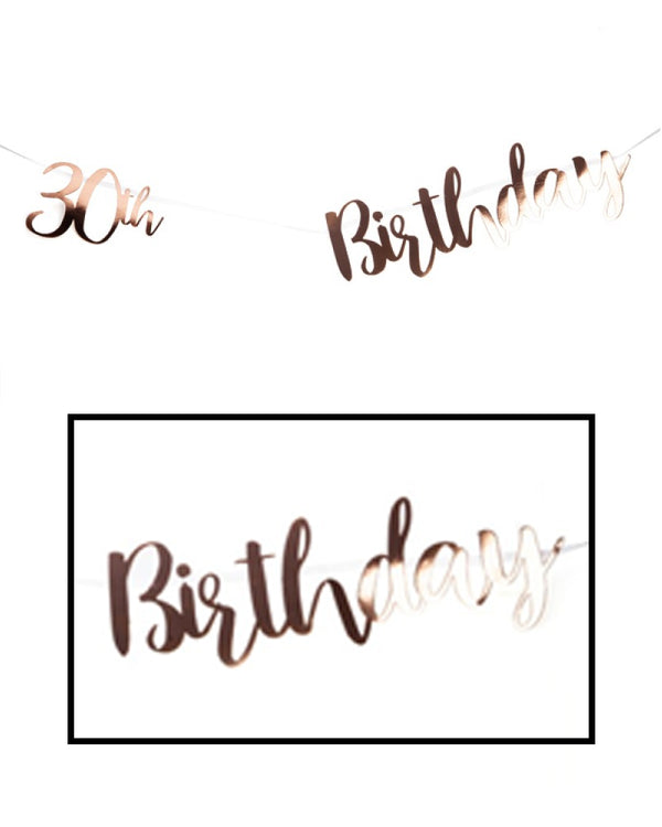 Celebrate an important milestone with this 30th Birthday Rose Gold Bunting 1.8m. The banner features a gorgeous rose gold bunting with 30th birthday brush-lettered design. The perfect finishing touch for a 30th birthday party.