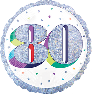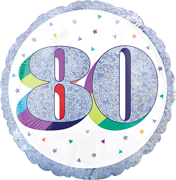 45cm Standard Holographic Heres to Your Birthday 80 Balloon