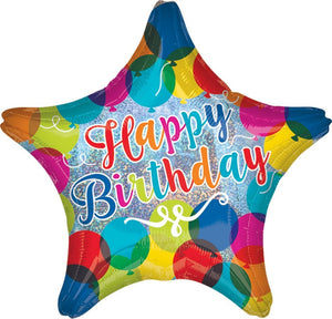45cm Standard Holographic Star Happy Birthday Sparkle Balloons