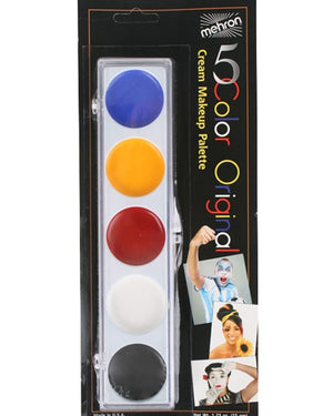 This 5 Colour Cream Palette Makeup is an essential for any dress up box. The pack contains five useful colours, blue, yellow, red, white and black. Ideal for creating an array of different looks with some very useful tips and instructions on the back of the pack. Removes easily with makeup remover or cold cream.