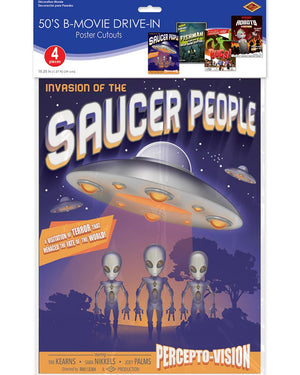 50s Movie Drive In Poster Cutouts Pack of 4
