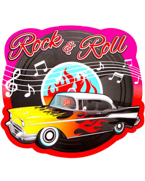 Need a little something to decorate your jumpin' '50's party? Look no further than this great 50s Classic Car Cutout. This great 10.5 cutout features a 50s style hot rod and the words "rock and roll." This is a great inexpensive way to decorate a room.