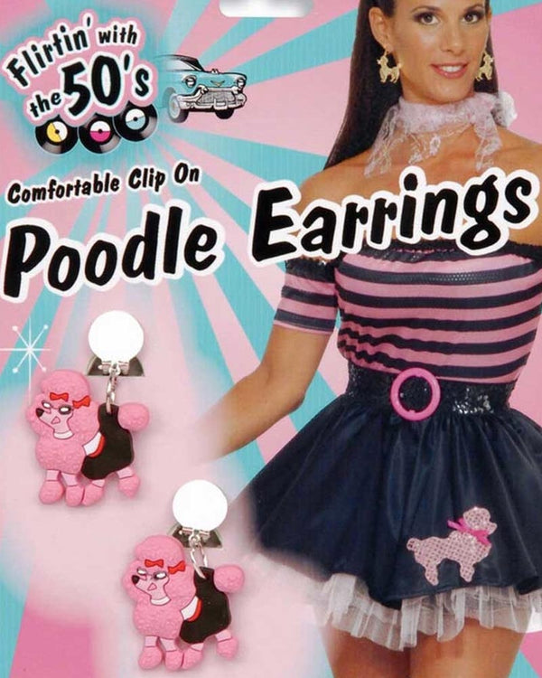 A 50s icon, the pink poodle, is something no costume can be without, so match your poodle skirt with these super cute 50s Pink Poodle Clip On Earrings. Your 50 costume will look totally authentic, plus you can wear these again with your everyday outfits. The earrings feature a pink poodle pendant with a metal clip. This clip on earring function means you don't have to have your ears pierced to look fabulous.