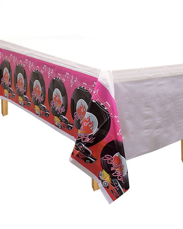 Have the most rockin' and rollin' table around with this great 50s Plastic Tablecover. Great way to easily decorate a table. Check out our other 50s party supplies for the most sock hoppin' party around.