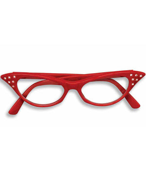 Add a little sparkle to your costume with the 50s Rhinestone Glasses in Red. These bright red glasses, with rhinestone detailing on the coners are perfect for parties!