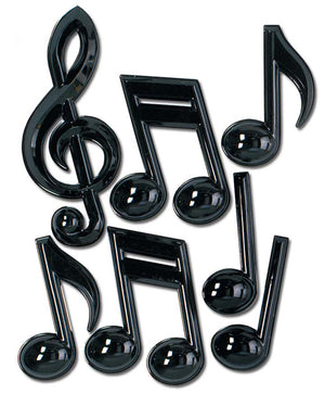 7 Pack Black Plastic Musical Note Set