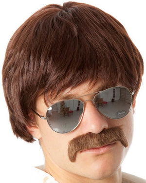 This 70s Detective Brown Wig and Moustache Set is a great way to complete your costume. Features a brown wig and matching brown handlebar style moustache. Also great for Anchorman Ron Burgundy and Beatles costumes! Wear a wig cap for extra comfort and to keep your own hair under control.