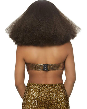 Get ready to tear up the dance floor in this Brown Disco Diva Wig. The wig is brown and comes to roughly shoulder length, with a side fringe and straight top that goes down into frizzy curls. Wear a wig cap for added comfort and to keep your own hair under wraps.