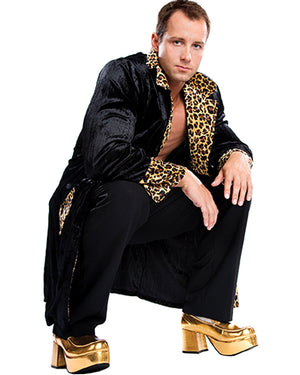 Get the Midas touch with these 70s Disco Gold Platform Deluxe Mens Shoes and make a statement on the dancefloor at your next 70s disco party. These super sleek shoes are metallic gold, are fully enclosed and have a platform sole and 7.6cm/3in heel. Pair up with our range of disco costumes and accessories to complete your 1970s look.