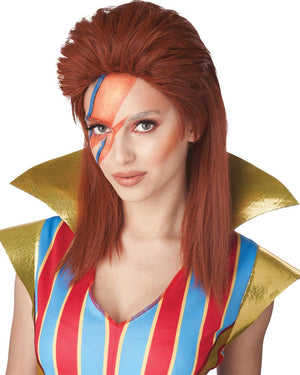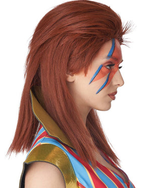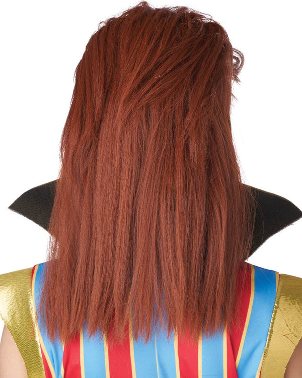Transform into the incomparable David Bowie with this fantastic 70s Glam Rocker Long Red Wig. The wig is long and red in a mullet style and is a great option for finishing off your 70s, 80s or celebrity costume! Wear a wig cap for added comfort and to keep your own hair under wraps.