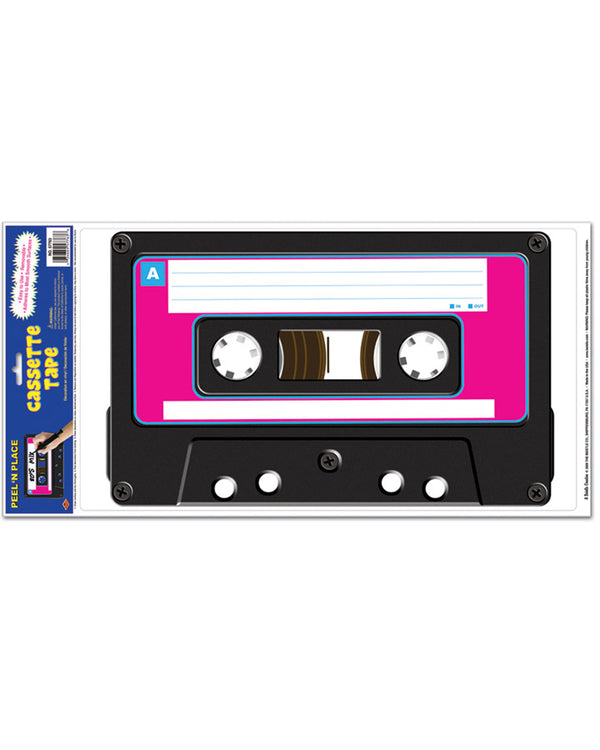 Add a classic '80s flair to your next retro party with this 80s Cassette Tape Peel and Place. This classic icon will match perfectly with our other '80s party supplies. Place this decal on any non-porous surface such as glass or a mirror. Printed on one side only.
