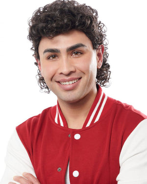 Transform yourself into the sporty guy at your 90s themed party when you wear this Brown Jock Wig. This wig comes in dark brown tight curls and is styled similar to a mullet. Pair with one of our jock costumes and accessories. Wear a wig cap for added comfort and to keep your own hair under wraps.