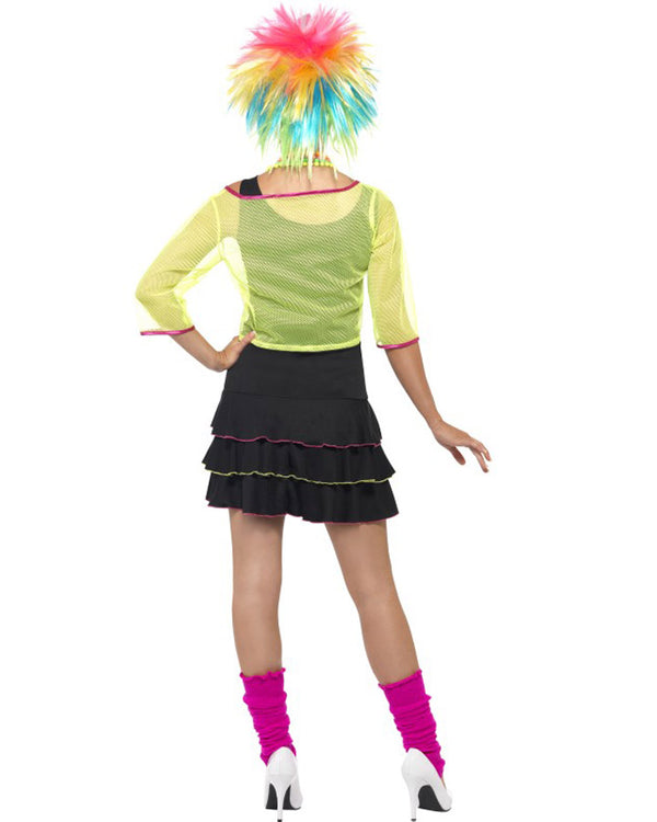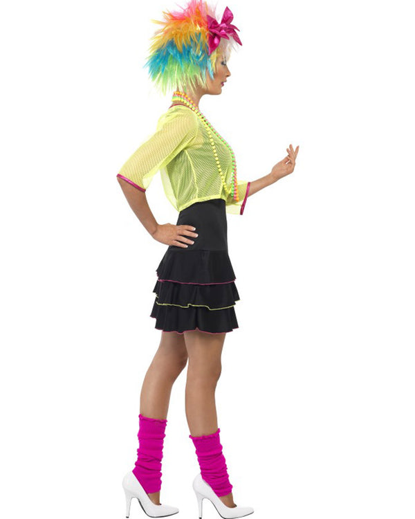 Step into the neon-lit world of the 80s with this sensational 80's Pop Tart Women's Costume, a must-have ensemble for any 80s-themed extravaganza! Get ready to steal the show and command the dance floor in this electrifying outfit that screams with retro flair. Featuring a sassy black tiered mini dress paired with a vibrant and loose yellow fishnet top, this costume exudes boldness and confidence. And let's not forget the large pink bow headband that adds a playful touch of glamour, reminiscent of the iconic style of Paula Yates herself. Get ready to dazzle and shine like the pop princess you are!