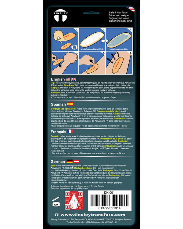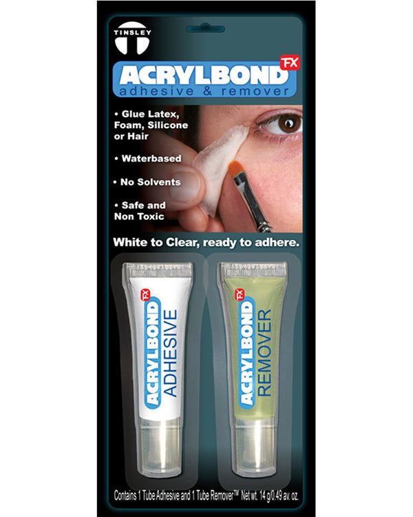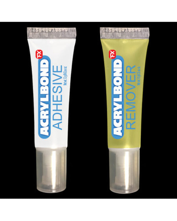 Whether you're applying a mustache, face gems or prosthetic our Acrylbond Adhesive & Remover is essential. Featuring a set of adhesive and adhesive remover, the adhesive is water-based and is a must-have accessory for applying any special effects.