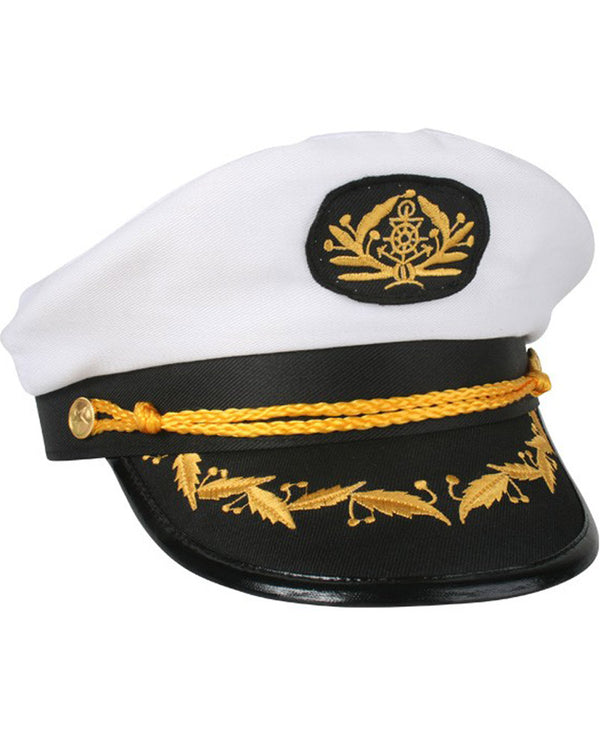 An essential part of every captain's uniform is the hat so check out our Admiral Captain Hat. Our accessory features a traditional white navy captains hat with a black visor with gold leaf imagery, 2 gold strings indicating his/her rank and a black and gold navy insignia! Check out our range of sailor costumes and accessories to complete the look! Everyone likes a man in uniform!