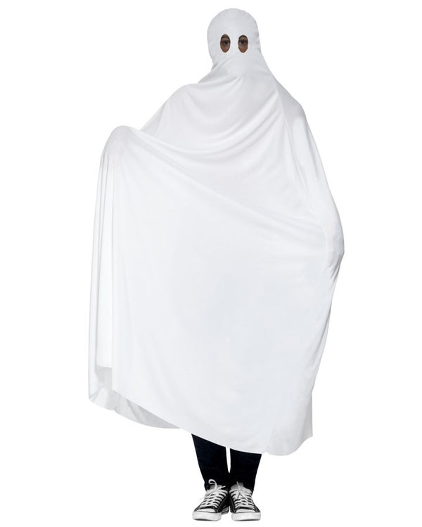 Become a friendly spook in this Adult Ghost Costume just like Caspar! This white gown is a simple over the head gown with two eyeholes covered in mesh. Boo!