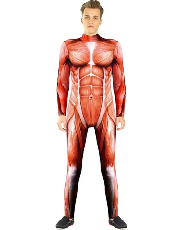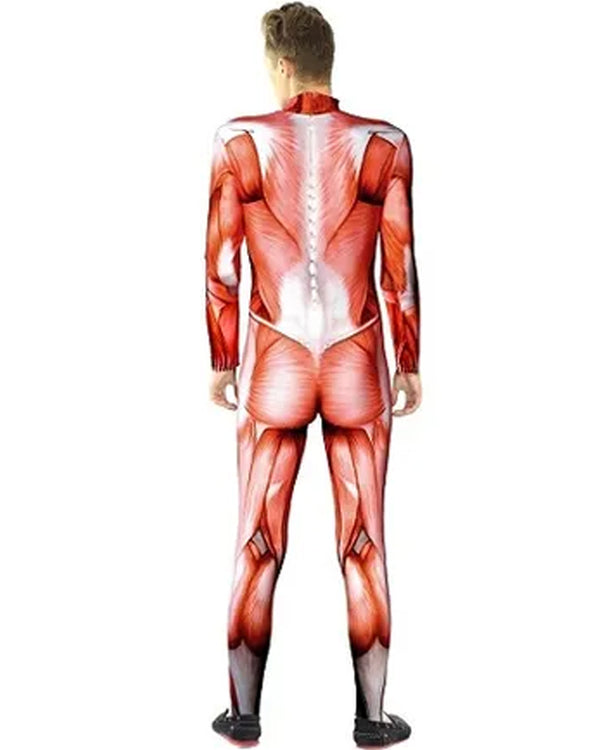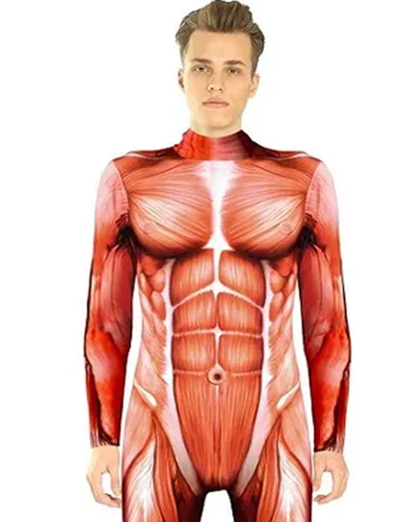 Break through wall moria and destroy the island devils with our Anatomy Mens Costume. Resembling the Colossal devil from the hit action/horror anime the all-in-one costume features a full-body photo-realistic jumpsuit with a detailed print of all the muscles in the body. Just keep those scouts away from your nape!