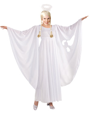 Come down from heavens escalator and show out in this Angel Womens Costume. This costume has been designed to help you feel and look like the Angel you are. This dress is a strong all white with long hanging sleeves and is also topped with a soft halo headpiece, everything needed for you to make your angelic presence felt. This dress has been designed for comfort as well as aesthetic, keeping you comfortable while also looking beautiful. Perfect for Halloween parties, dress up parties and much more.