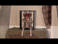 This Animated Caged Kid Walk Around Adult Costume will be a hit at your Halloween party. This costume features a square cage with silver bars and sitting inside is a 'captive child', wearing a tattered dress with printed yellow ducks and her legs hanging out of the cage. When turned on, the child rocks back and forth, like she is trying to pull on the bars. She also screams, for a truly terrifying costume. To wear this costume, there are attached shoulder straps. Dress as a creepy clown or other terrifying characters.