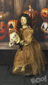 Add some spooky fun to your Halloween House this year with this creepy Animated Zombie Girl On Horse 1m. The animated prop comes as a 1m tall zombie girl on a horse. Both the girl and the horse have rotting zombie facial features and the girl's dress is made from brown gauze. What's more, the animatronic prop is activated by IR sensors, triggering the horse to rock while the zombie girl sings terrifying nursery rhymes. Perfect for indoor or outdoor use as long as it's protected from the weather.