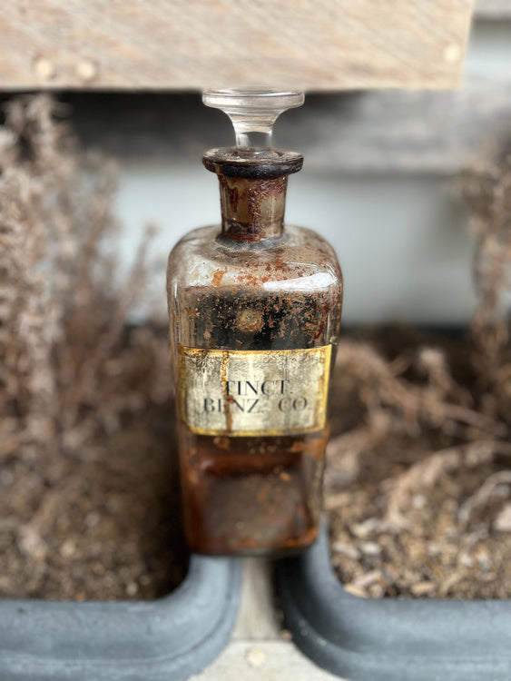 - Antique “Tincture Benz Co” glass apothecary bottle from the 1890’s.